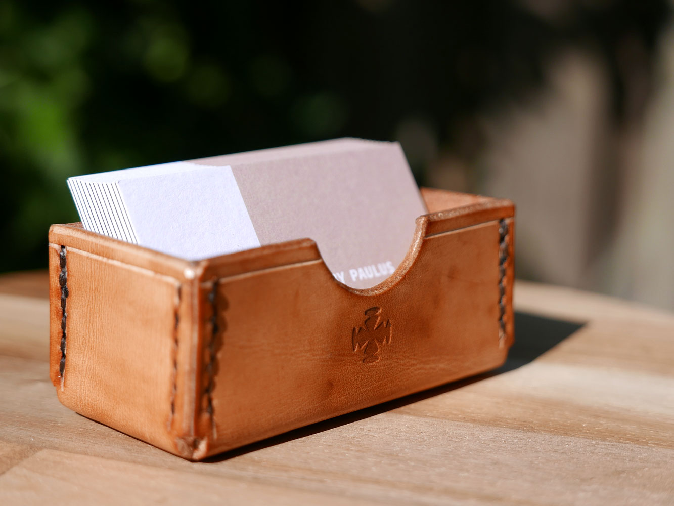 Een visitekaart bakje van tuigleer. Mooi en stoer, voor jezelf of de promotie van je bedrijf in stijl.