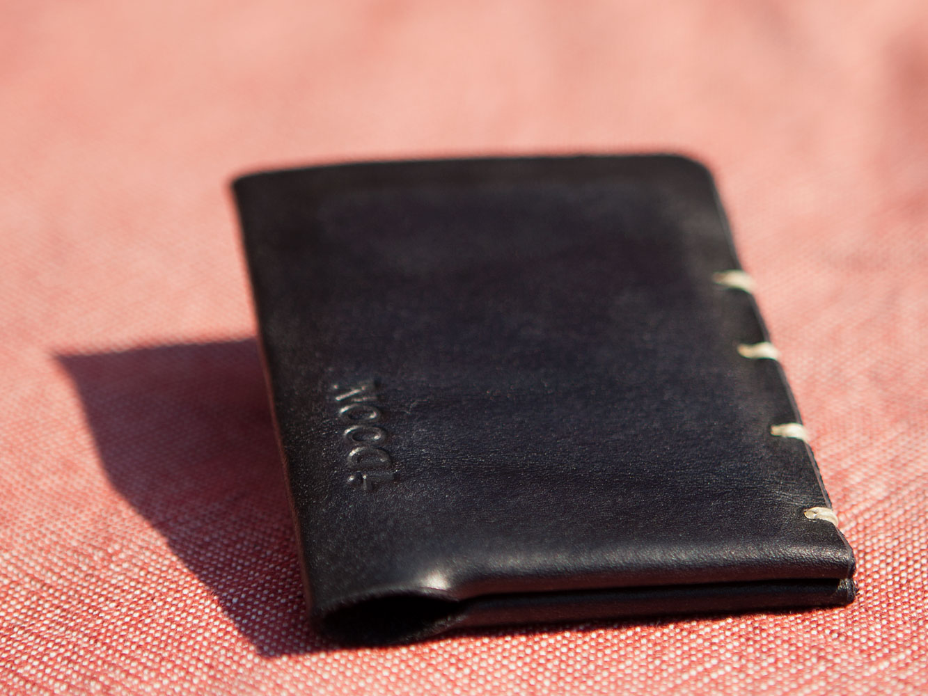 Een stijlvol zwart leren mapje voor pasjes. Gekleurd op natuurlijke wijze met campeche en walnoot volgens eigen procedé.